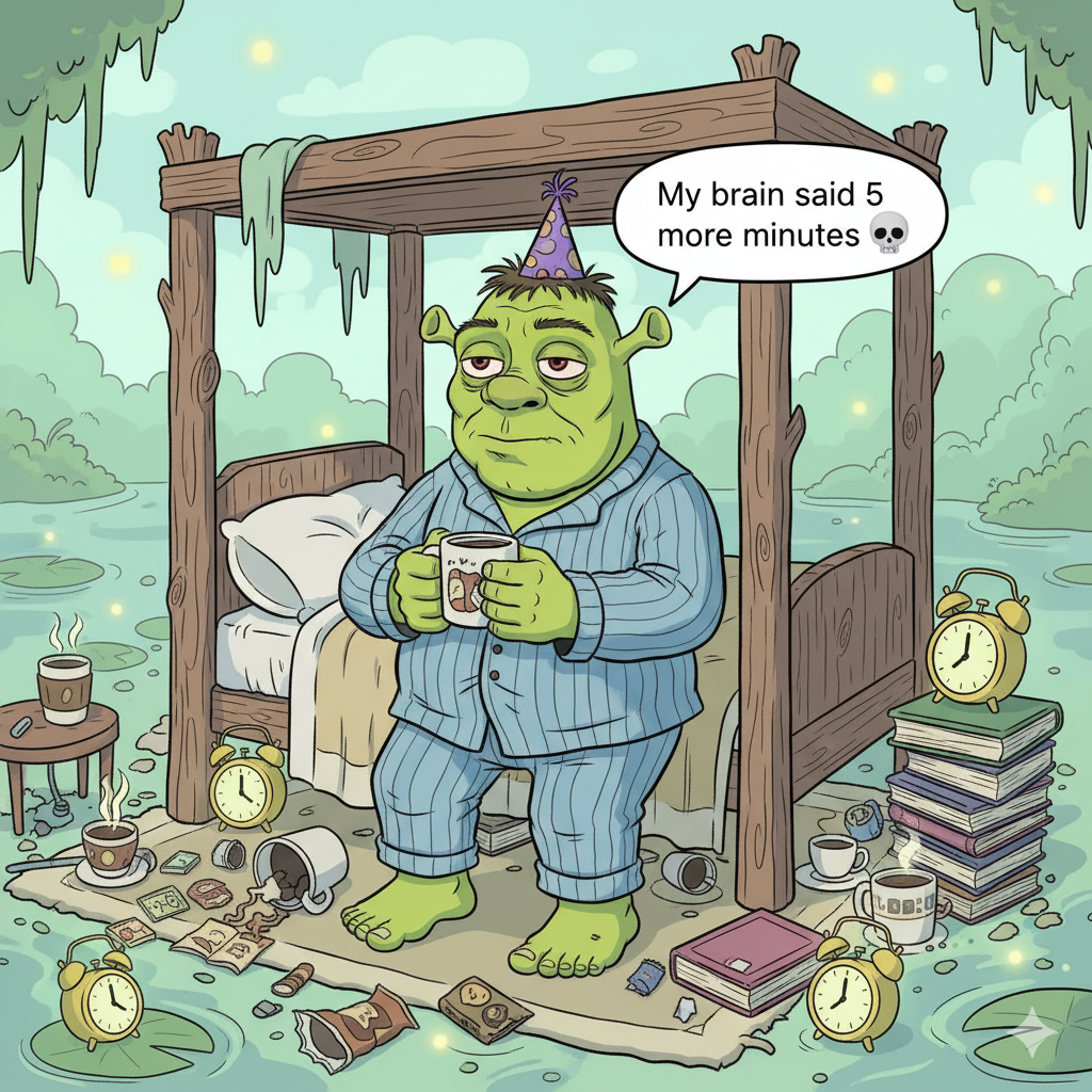 Because Shrek represents all of us — tired, done, and living our best swamp life.